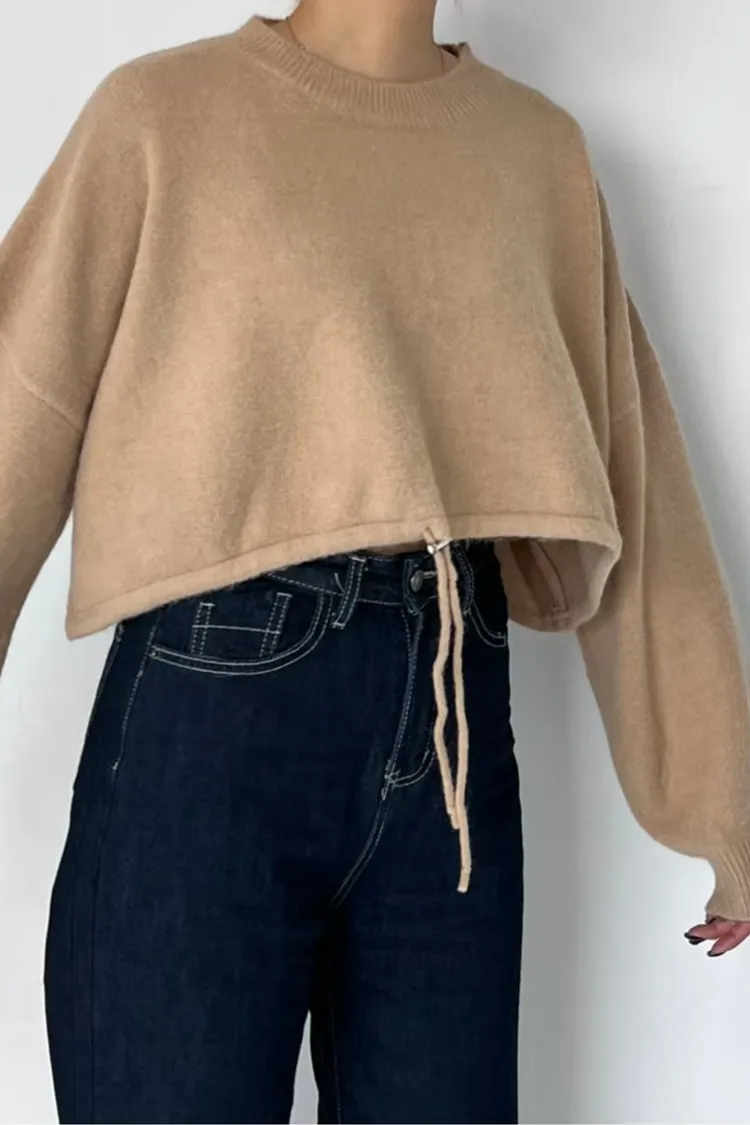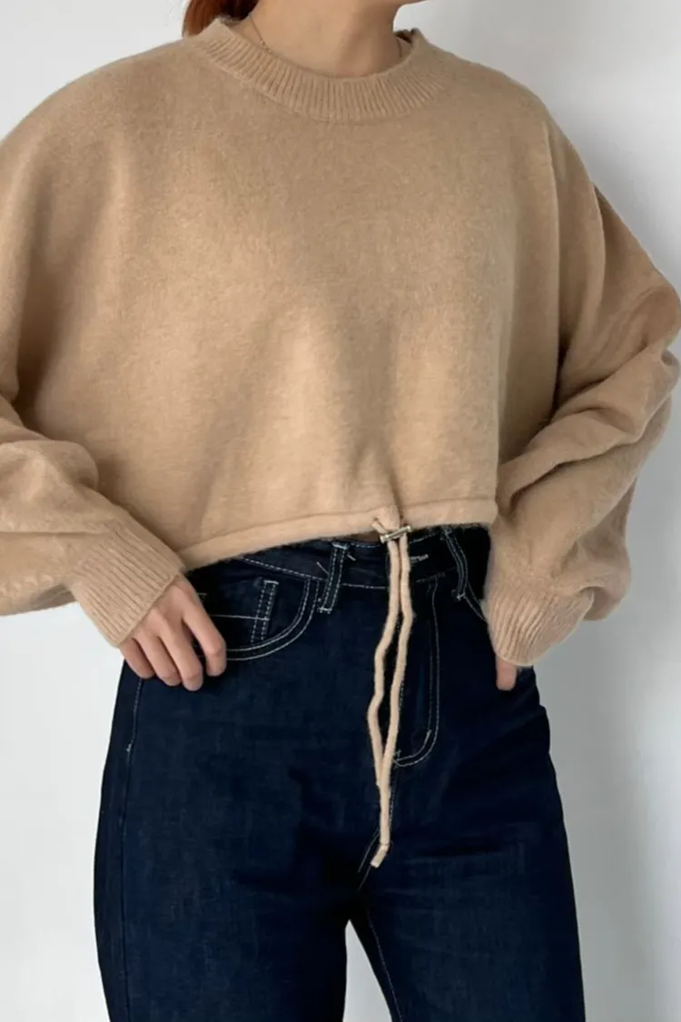 下抽繩設計短毛衣