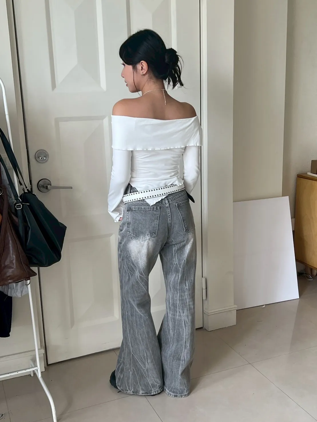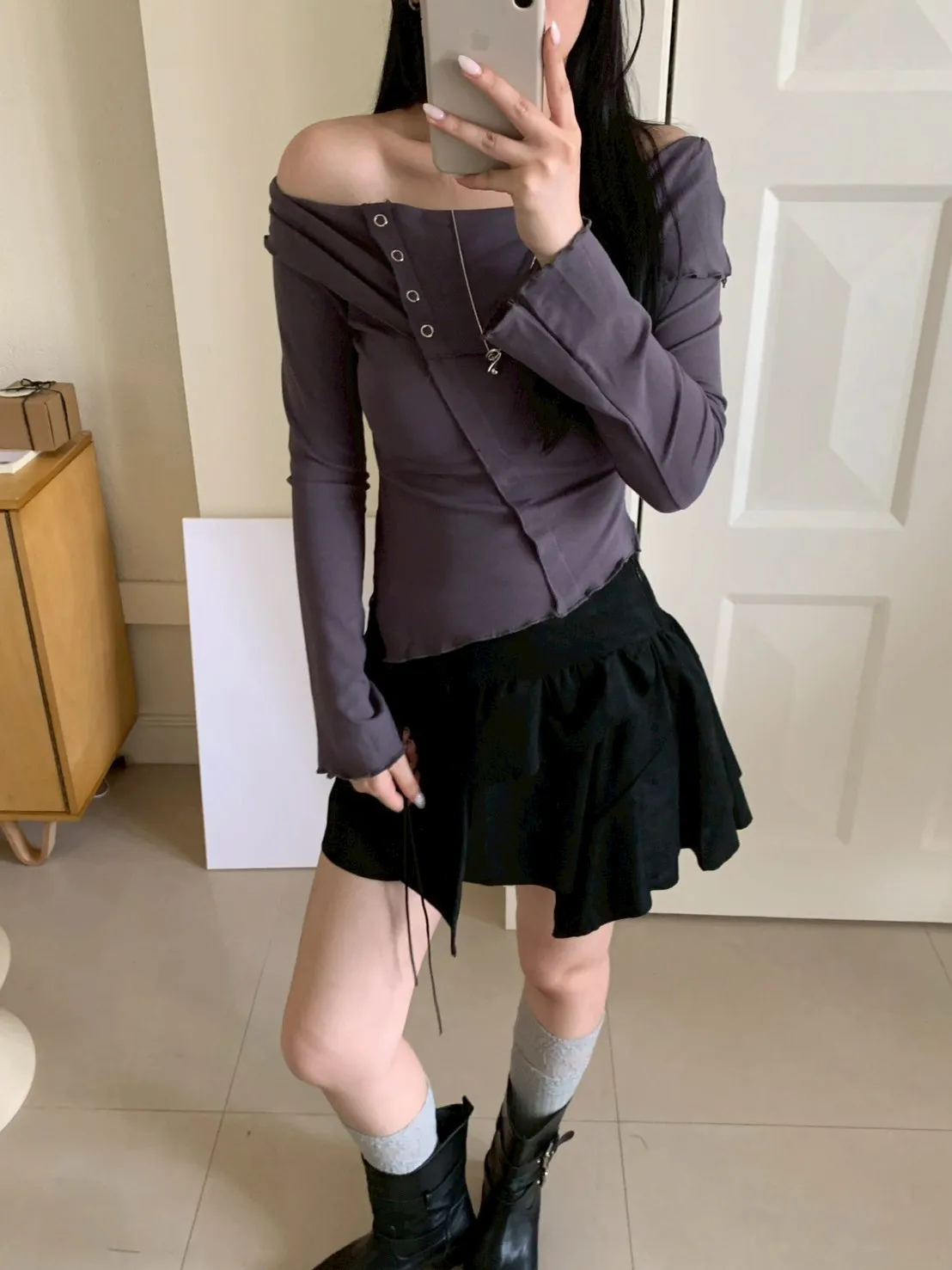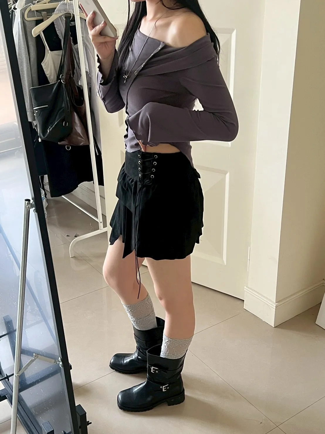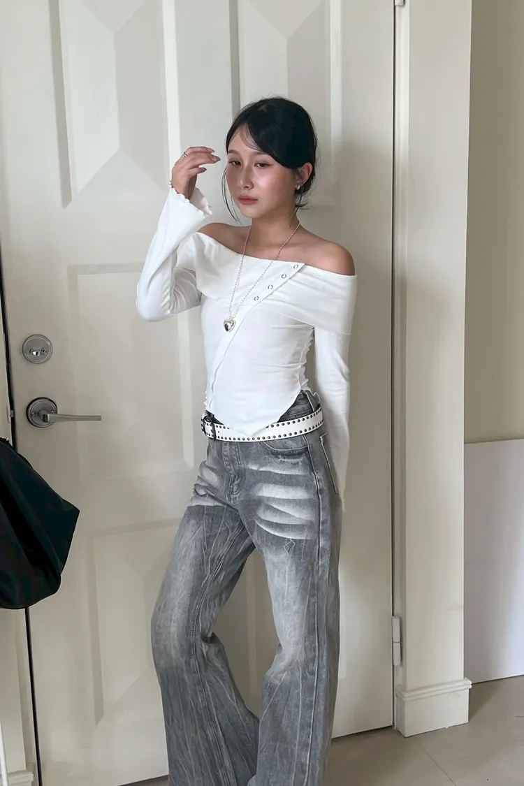 著白模特 紫誼160/48 著黑、灰模特 瑄163/50