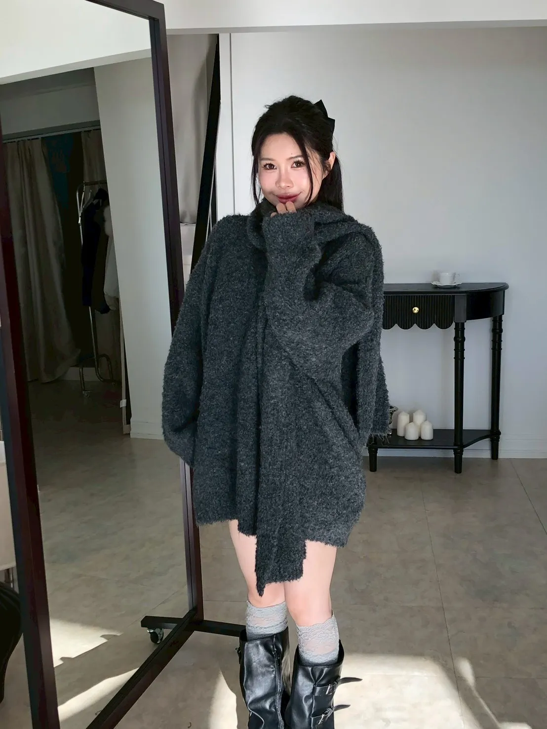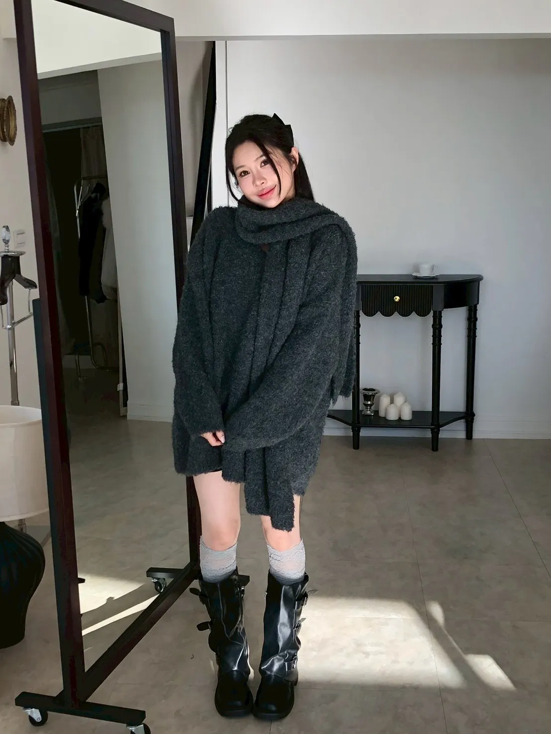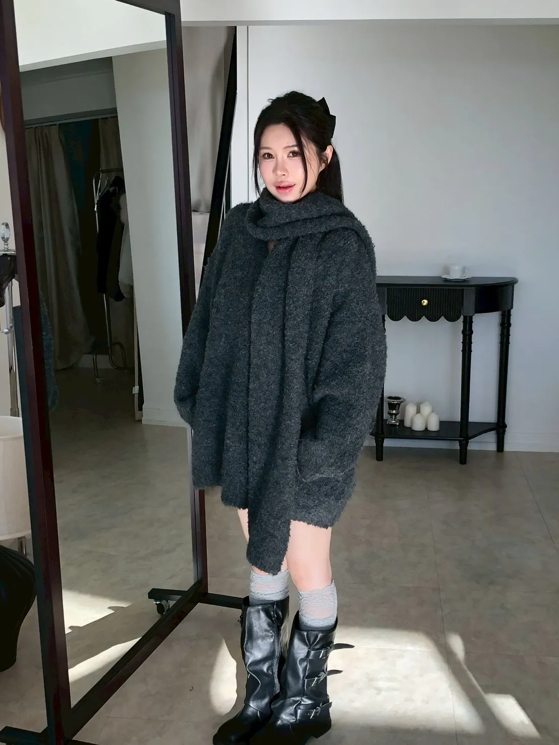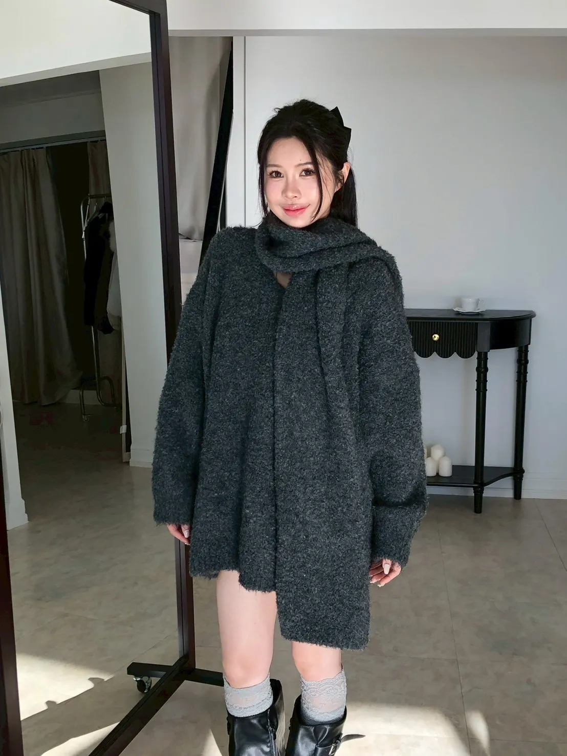 | 尺寸(cm) | 衣長 | 肩寬 | 袖長 | 胸 | 圍巾寬 | 圍巾長 |